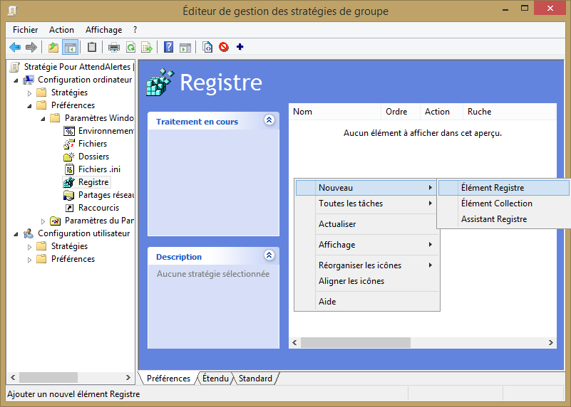 Donnez un nom à cette GPO. Par exemple Pour AttendAlertes |