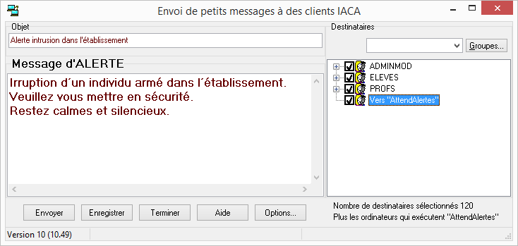 Suivant le choix fait avec EnvoiMsg, le service IACA envoi l'alerte aux clients IACA et aux ordinateurs qui exécutent AttendAlertes.